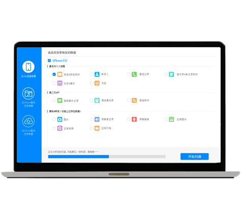包含:通讯录、备忘录、照片/视频、短信、QQ聊天记录、微信通讯录等的备份