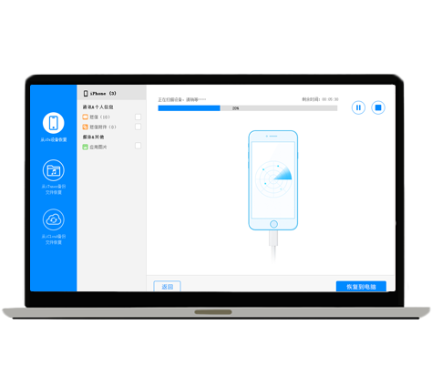 选择恢复模式,选择恢复数据项,开始扫描
