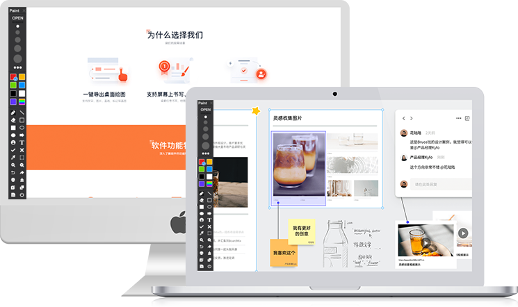 支持文字、图片、直线、标记等画图